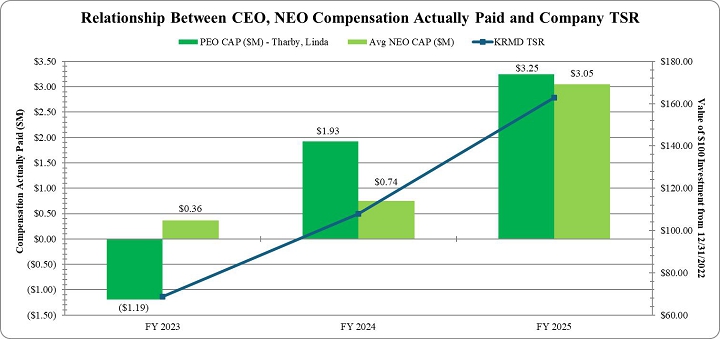 The following chart sets forth the relationship between Compensation Actually Paid to our CEO (“PEO”), the average of Compensation Actually Paid (“CAP”) to our Non-CEO NEOs, and the Company’s TSR over the fiscal three year period from 2023 through 2025.