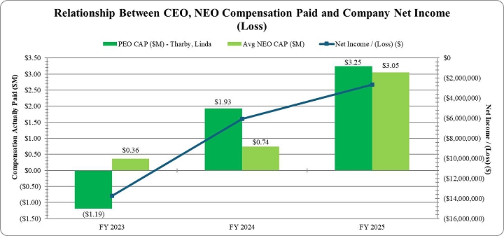 The following chart sets forth the relationship between Compensation Actually Paid to our CEO, the average of Compensation Actually Paid to our Non-CEO NEOs, and the Company’s Net Loss over the fiscal three year period from 2023 through 2025.